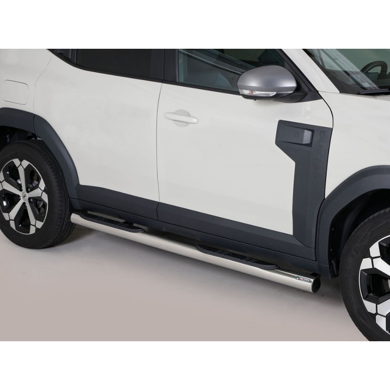 Estribos de tubo Inox de 76mm con pisantes para DACIA DUSTER desde 2024.