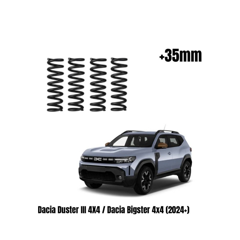Kit de 4 muelles reforzados y de elevación +35mm para DACIA DUSTER 4x4 / BIGSTER 4x4 desde 2024.