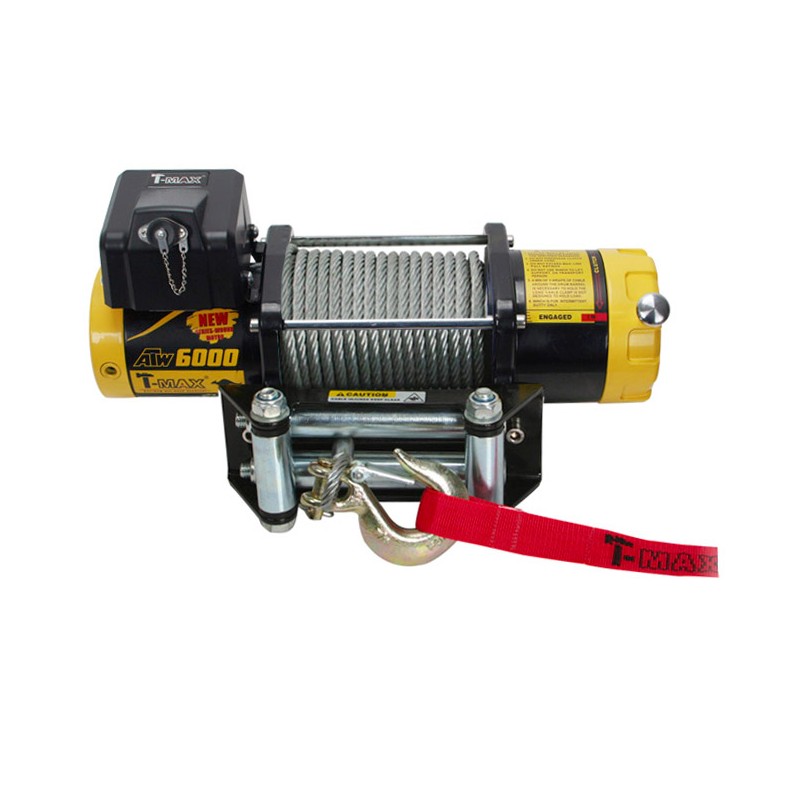 Cabrestante T-MAX ATW-6000 12v cable de acero de 6,8mm x 18mts,capacidad de arrastre 2.720kg,indicado para ATV,QUAD y remolques,mando por cable,relación 189:1,peso 16kg.