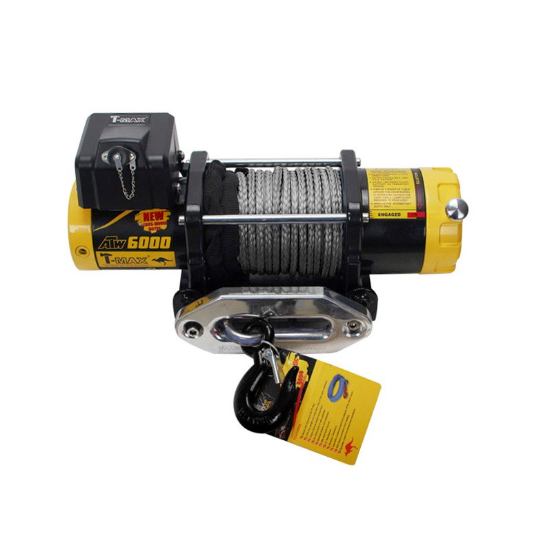 Cabrestante T-MAX ATW-6000 12v cable de sintético de 7,5mm x 15mts,capacidad de arrastre 2.720kg,indicado para ATV,QUAD y remolques,mando por cable,relación 189:1,peso 12,5kg.