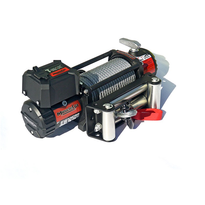 Cabrestante T-MAX MW12500 Muscle-Lift 12v cable de acero de 9,2mm x 26mts,capacidad de arrastre 5.665kg,indicado Off Road,mando por cable de 3,7m,relación 193,2:1,peso 38kg.Cumple la norma de resistencia al agua IP67.