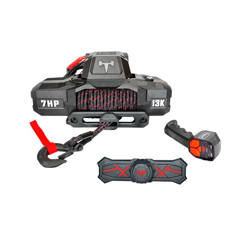 Cabrestante T-MAX MW13000i Titan Series caja de reles incorporada 12v cable sintético de 28mts,capacidad de arrastre 5.900kg,indicado Off Road,mando por cable de 3,7m e inalámbrico..Cumple la norma de resistencia al agua IP68.