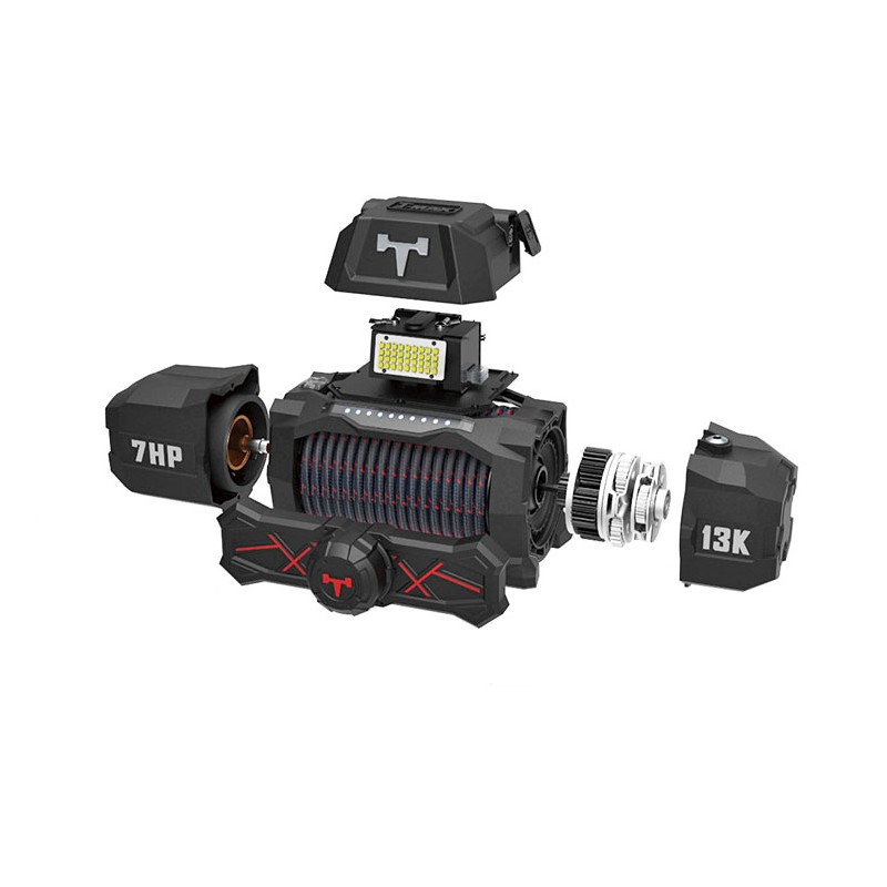La sexta generación de cabrestantes T-MAX llega con el nombre de "Titan Series" y supone una mejora en todos los aspectos frente a generaciones anteriores y su competencia. Equipados con un motor de 7hp, consiguen una capacidad de tracción de hasta 13000lbs sin sacrificar velocidad. La grasa de grado aviación, apta para trabajar a bajísimas temperaturas de hasta -41ºc, combinada con engranajes de alta precisión aseguran suavidad en el funcionamiento y alta durabilidad en los más duros entornos de trabajo.