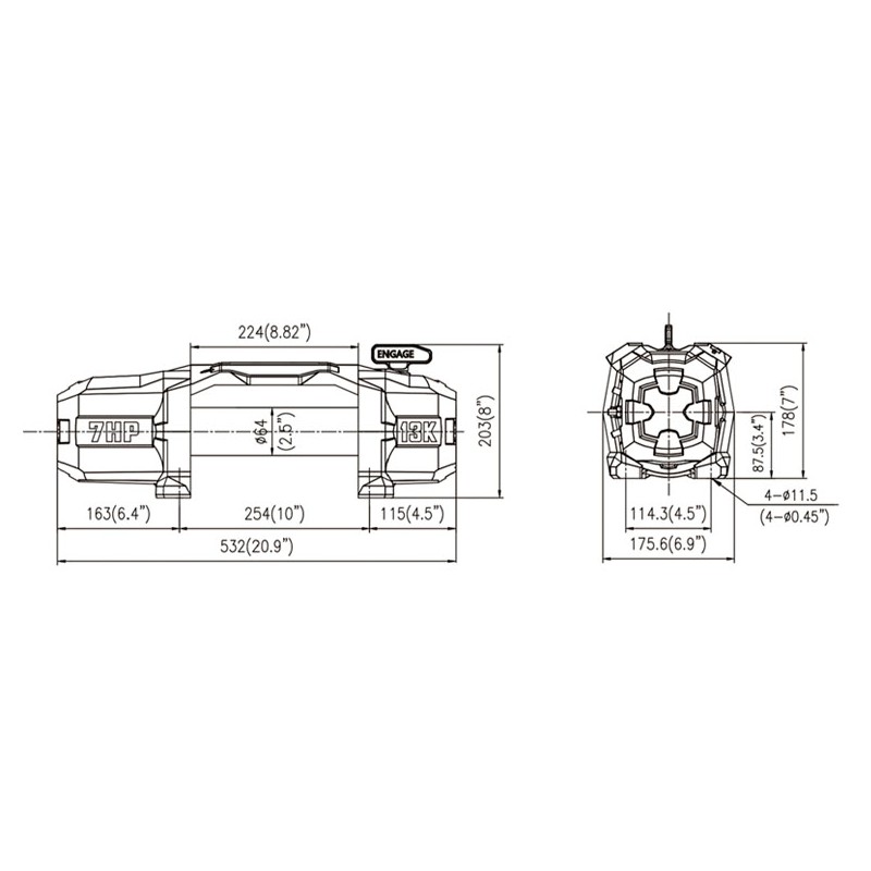 En la parte exterior desaparece por completo la manecilla de embrague, haciendo el conjunto más compacto y estético, aunque aún se puede seguir liberando el embrague manualmente con la herramienta suministrada si se desea. Y gracias al mayo diámetro de tambor podemos alojar cómodamente 28m de cable de plasma (SK-75 Dyneema) enfundado, mucho más resistente y duradero que los cables de plasma tradicionales (de serie en toda la gama de cabrestantes T-MAX "Titan Series").