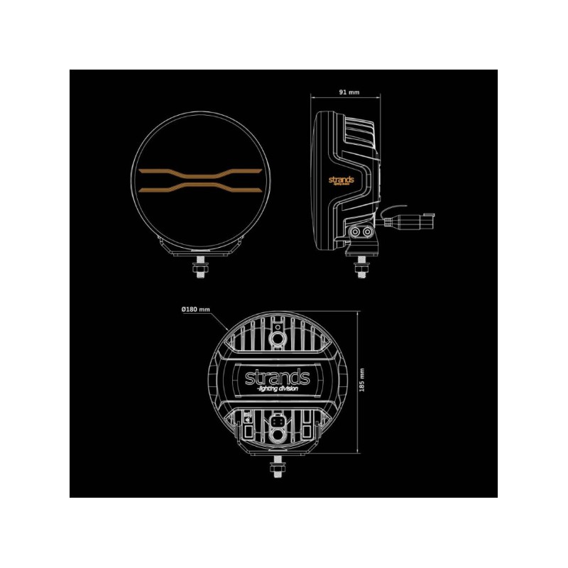 Faro led STRANDS FOR9T DRAGON DRIVE de 7" largo alcance,estructura de aluminio y lente de Policarbonato.IP67/IP69K,soportes y tornillos acero inox,altura con soporte 185mm,profundidad 91mm,potencia 110w,puntos de luz 20,E-Approved ECE R148/149 & ECE R10.06.Precio unidad.