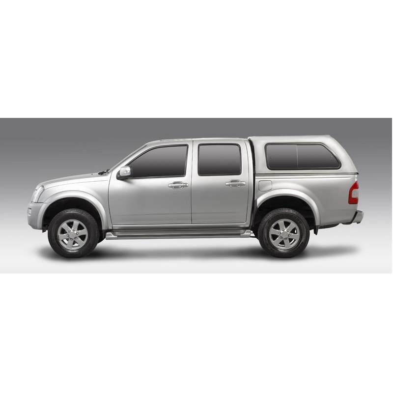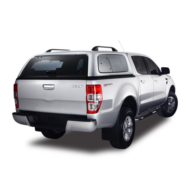 Hard top AEROKLAS acristalado para FORD RANGER 2012-2022 doble cabina,fabricado en ABS,cristales tintados,cierre de seguridad con llave,luz interior y tercera luz de freno incluidas.Barras longitudinales OPCIONALES.