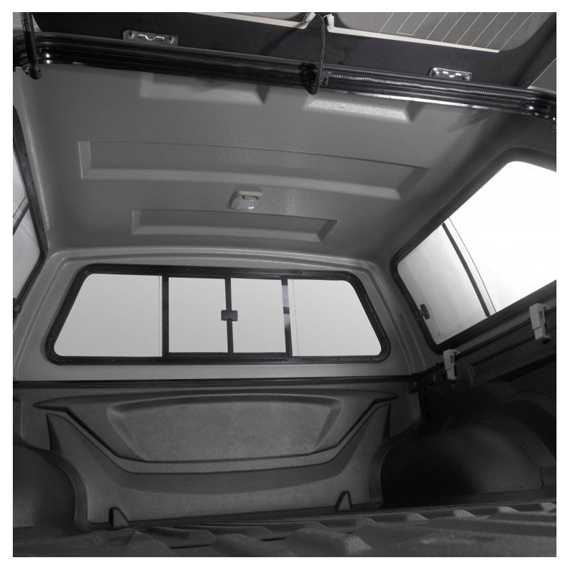 Hard top AEROKLAS con ventanas para MITSUBISHI L200 desde 2019 doble cabina,fabricado en ABS,cristales tintados,cierre de seguridad con llave,luz interior y tercera luz de freno incluidas.Barras longitudinales OPCIONALES.