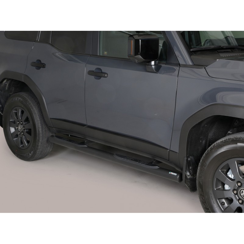 Estribos de tubo Negro de 76mm con pisantes para TOYOTA LAND CRUISER J250 desde 2024.