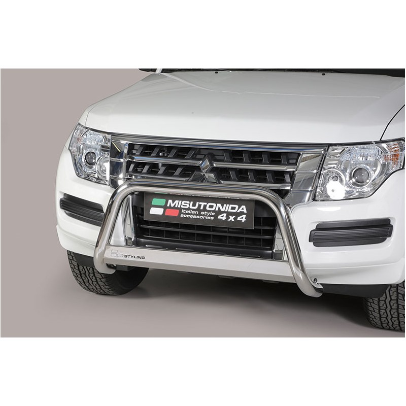 Defensa central Inox de 63mm con grabación "MONTERO",con CE para MITSUBISHI MONTERO V80 desde 2015.