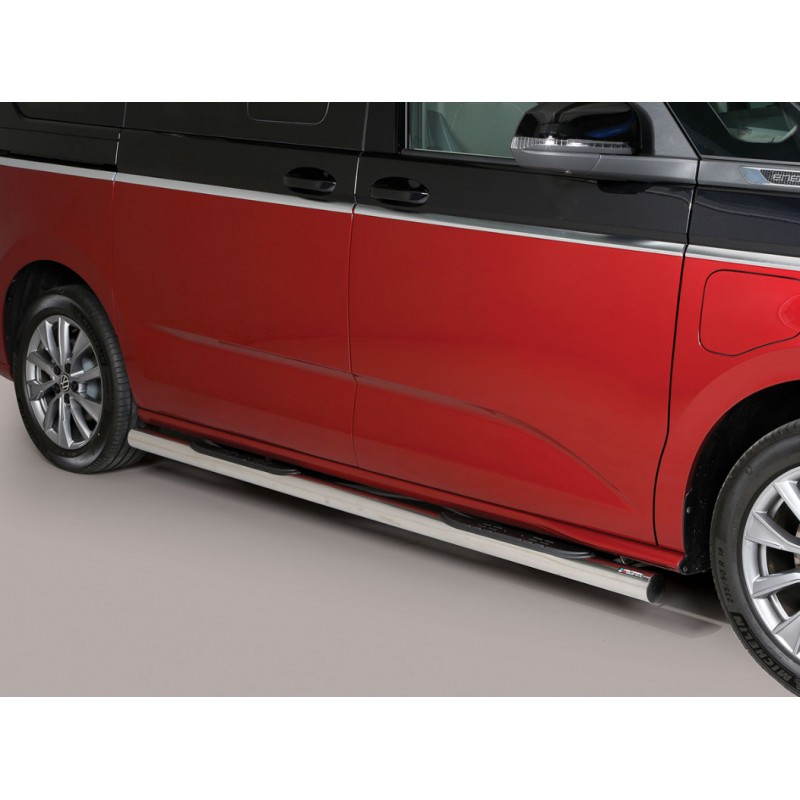 Pareja de estribos de tubo Inox de 76mm con pisantes para VOLKSWAGEN MULTIVAN T7 desde 2022.También se puede pedir negro mate.