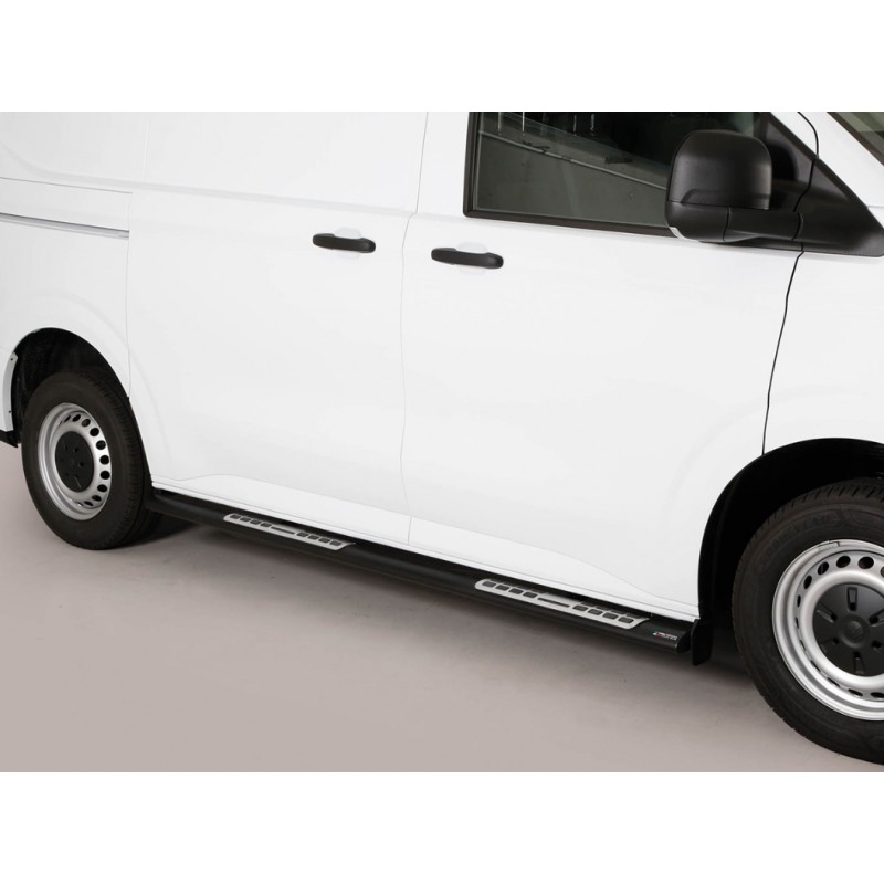 Estribos de tubo Negro ovalado con pisantes tipo DSP VOLKSWAGEN T7 carrocería L1.