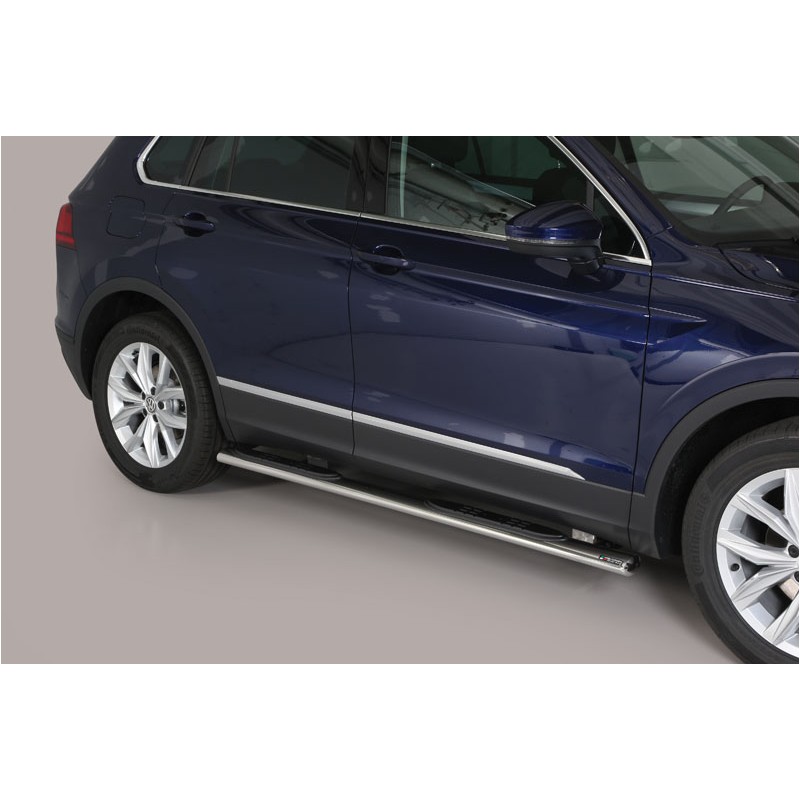 Estribos de tubo Inox ovalado con pisantes para VOLKSWAGEN TIGUAN desde 2017.También se puede pedir negro mate.NO COMPATIBLE CON ACABADO R-LINE.