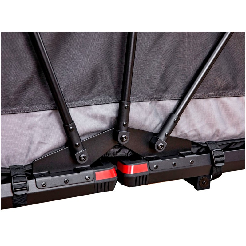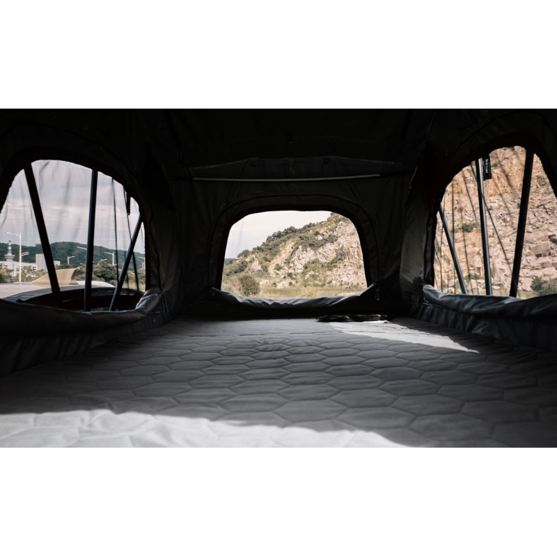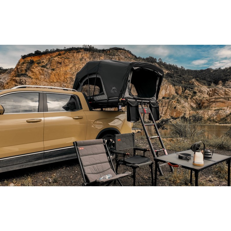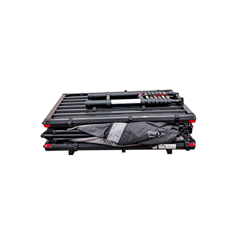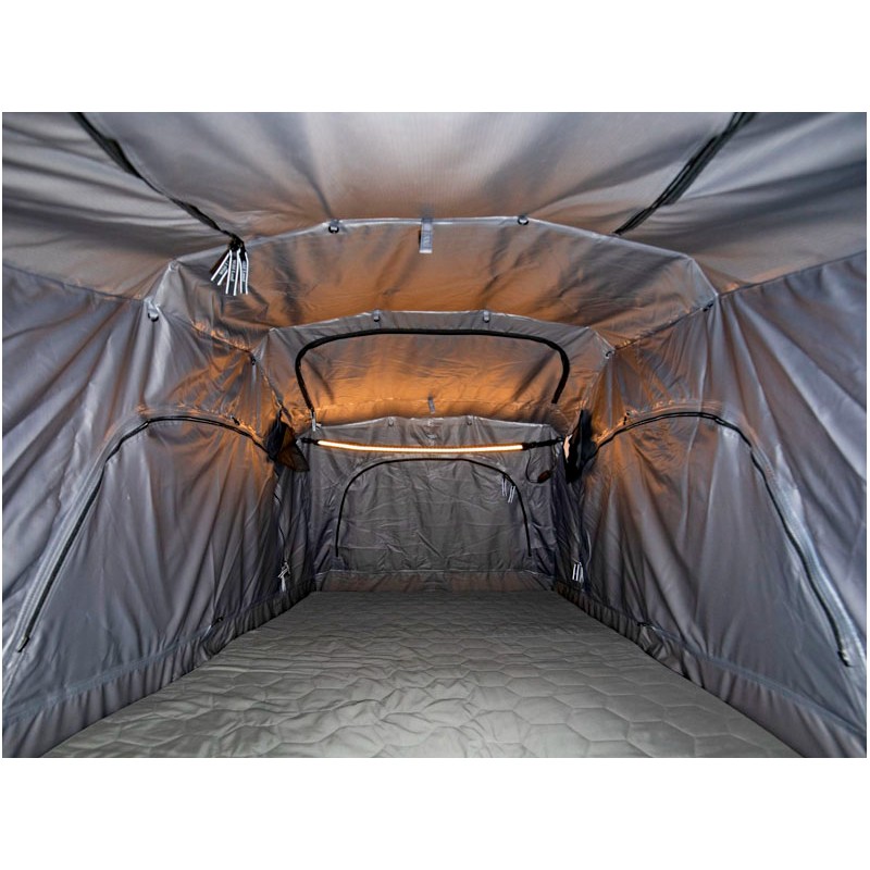 Esta tienda de techo es la más pequeña y ligera de la gama Wild Land. Cuenta con un sistema de apertura en libro, con el que una vez abierta dobla su tamaño. Gracias a su sistema de bisagras, permite acampar sin necesidad de instalar apoyos verticales. Es perfecta para los coches más pequeños y compactos. Se ha mejorado el tejido principal, a un tejido más tecnico, resistente y transpiralble, 610D polyoxford. Incorpora un regulador de intensidad a la tira LED del interior de la tienda. Mejora su funda de lona en tejido impermeable, mucho más facil de colocar y de guardar.